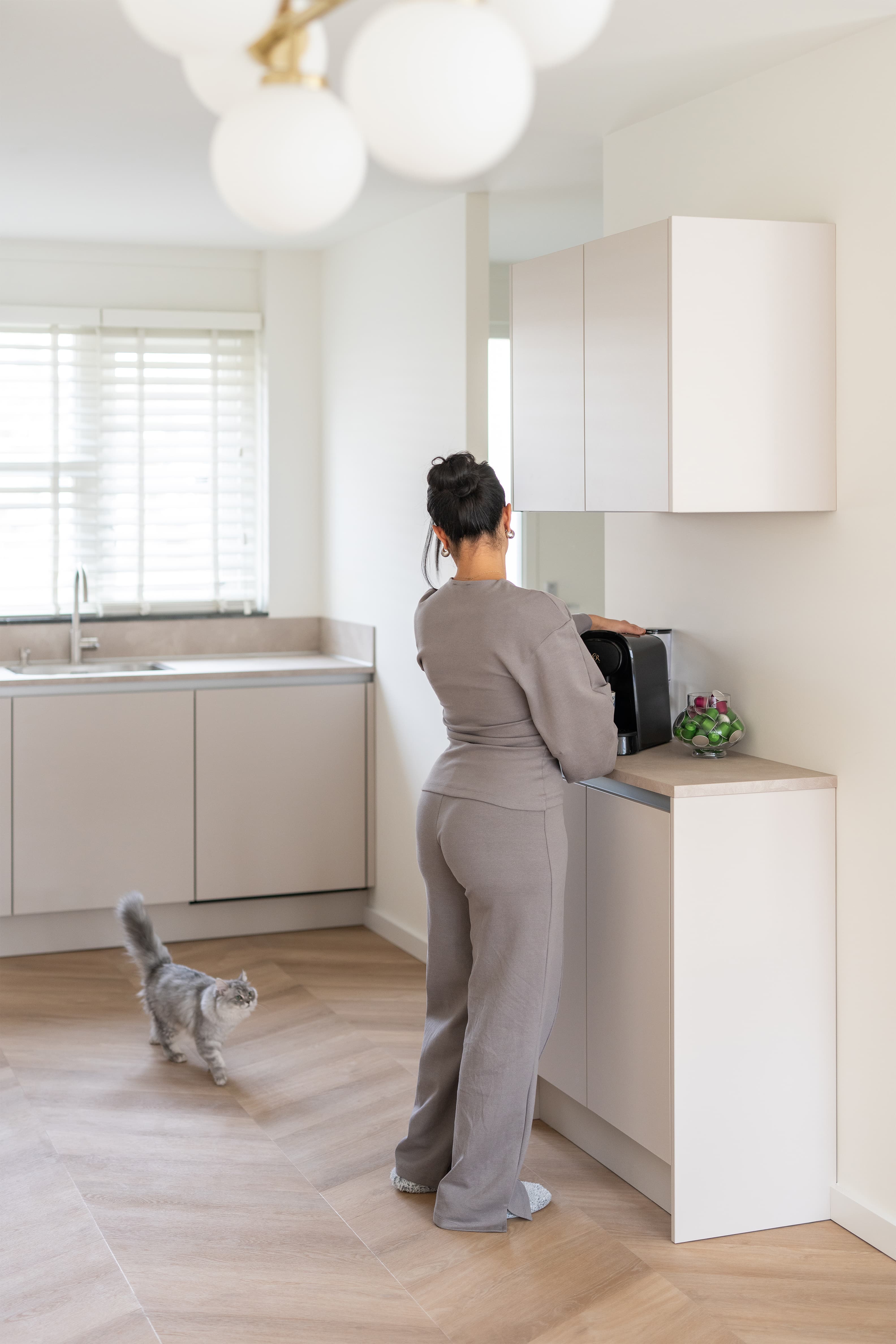 Heb je geen ruimte voor een nis of ingebouwd apparaat? Geen probleem. Een koffiehoekje op het werkblad kan minstens zo gezellig zijn.