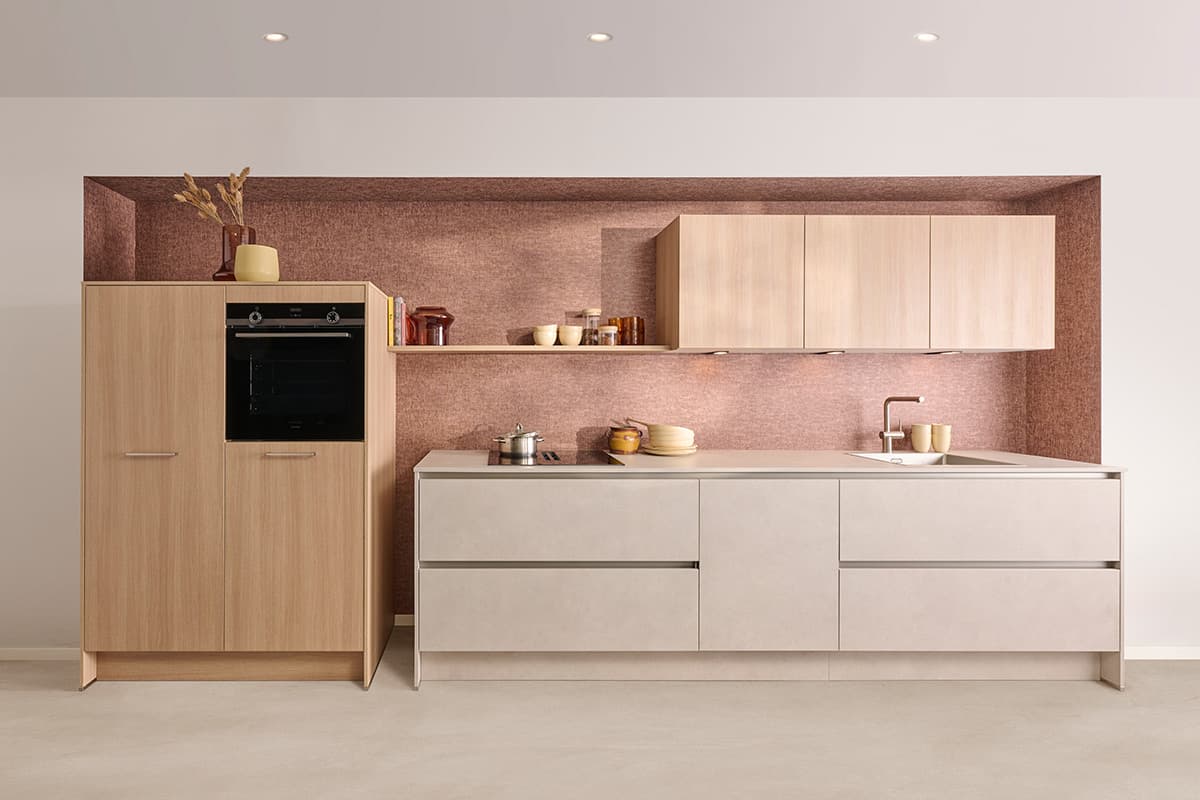 Kunststof werkbladen zijn verkrijgbaar in een uitgebreid palet van kleuren en texturen. Van warme groene en grijze tinten met een reliëf tot subtiele natuurlijke beige kleuren, je hebt volop keuze om je keuken een uniek karakter te geven. Dankzij de veelzijdigheid van kunststof kunnen wij maatwerk leveren die perfect aansluit bij jouw specifieke wensen en de stijl van je interieur.